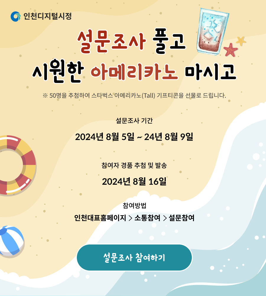 [인천디지털시정] 서비스 품질 향상 및 기능개선의 기초자료로 활용하기 위한 설문조사에 많은 참여 부탁드립니다.