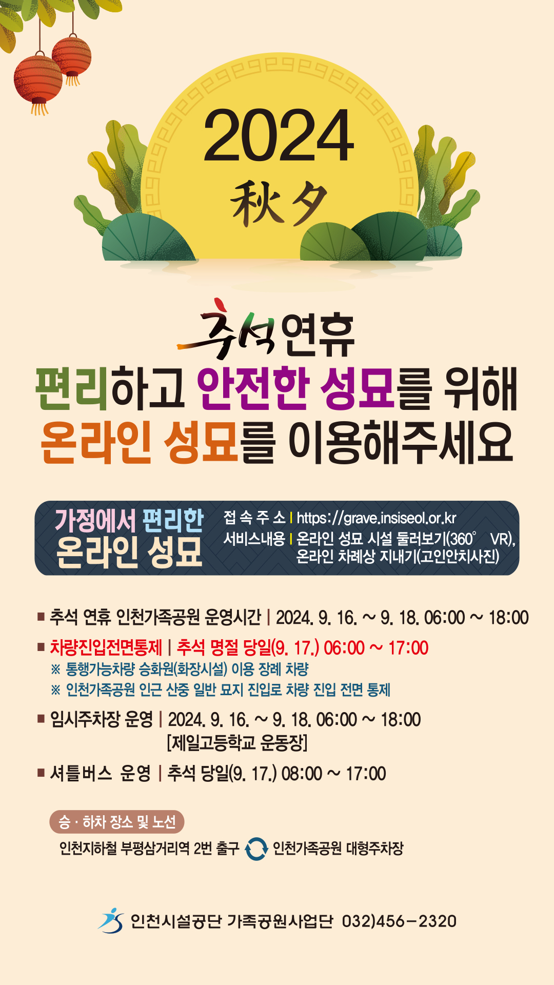 추석 연휴기간 동안 인천가족공원 내 혼잡이 예상되오니,