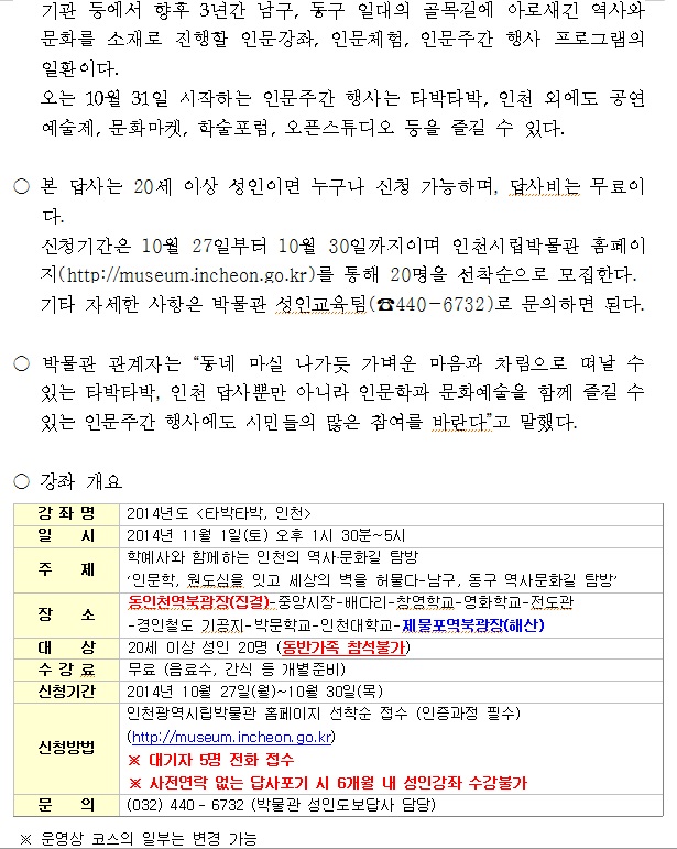 [교육] 2014년 '타박타박, 인천' 11월 답사 안내