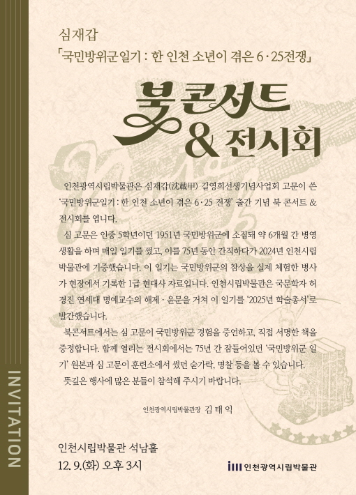 2025년 인천시립박물관 학술총서 발간 보고회<국민방위군일기: 한 인천 소년이 겪은 6·25전쟁> 북콘서트&전시회