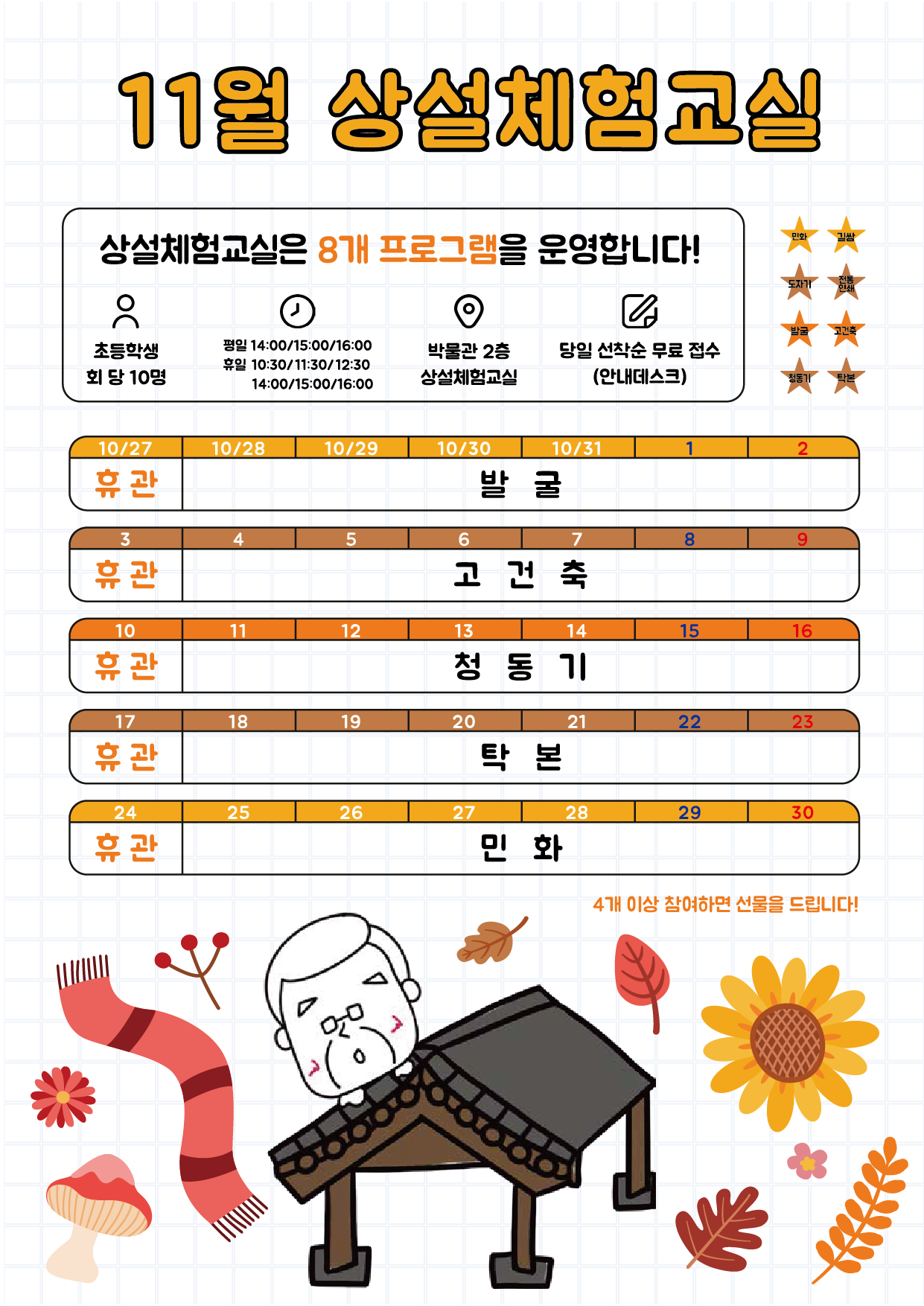 [시립박물관] 상설체험교실 11월 교육프로그램 안내