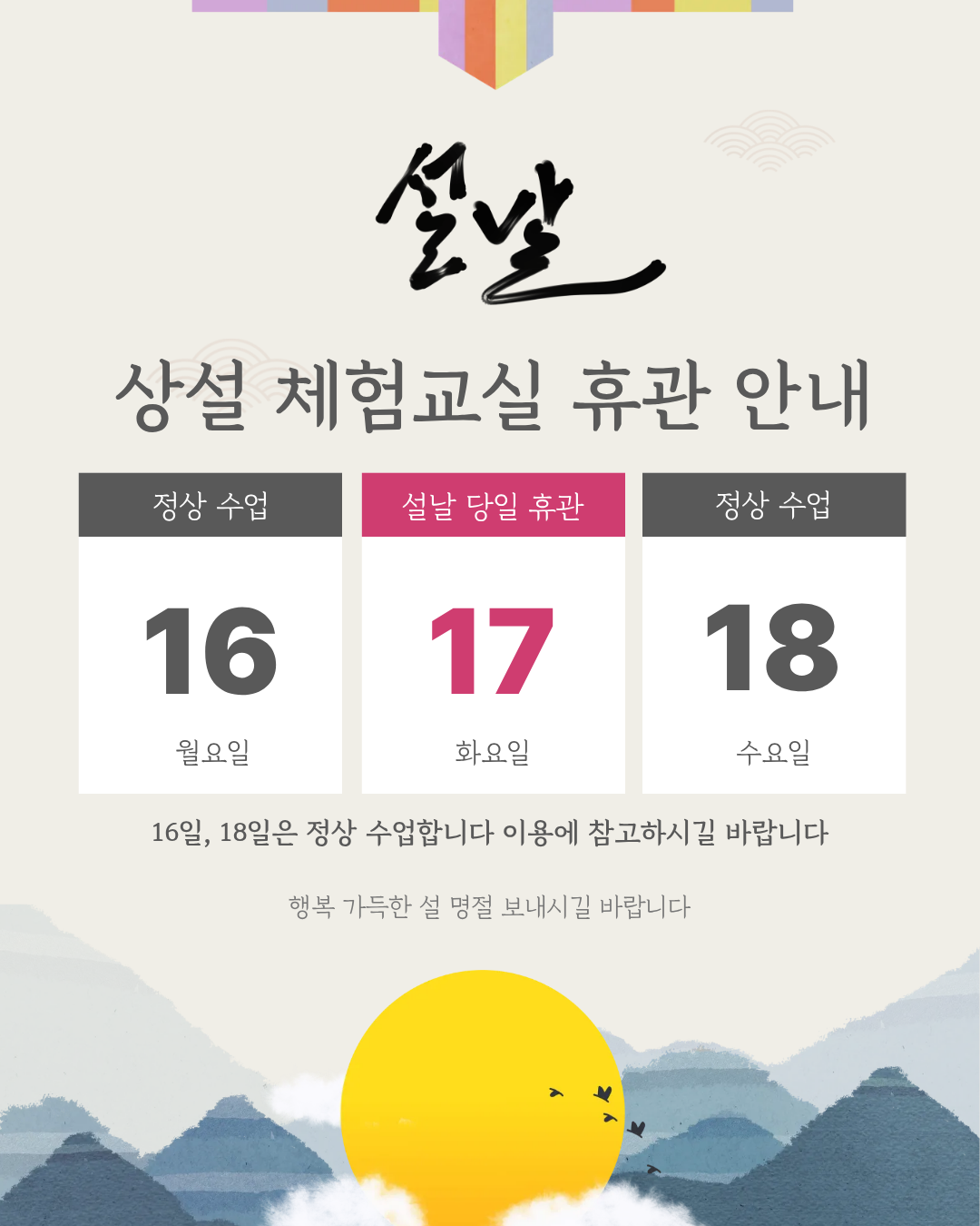 ★ 2월 17일(설 당일) 상설체험교실 휴관 알림