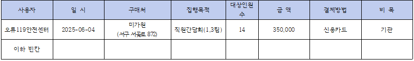 2025년 6월 검단소방서 오류119안전센터 기관운영업무추진비 집행내역