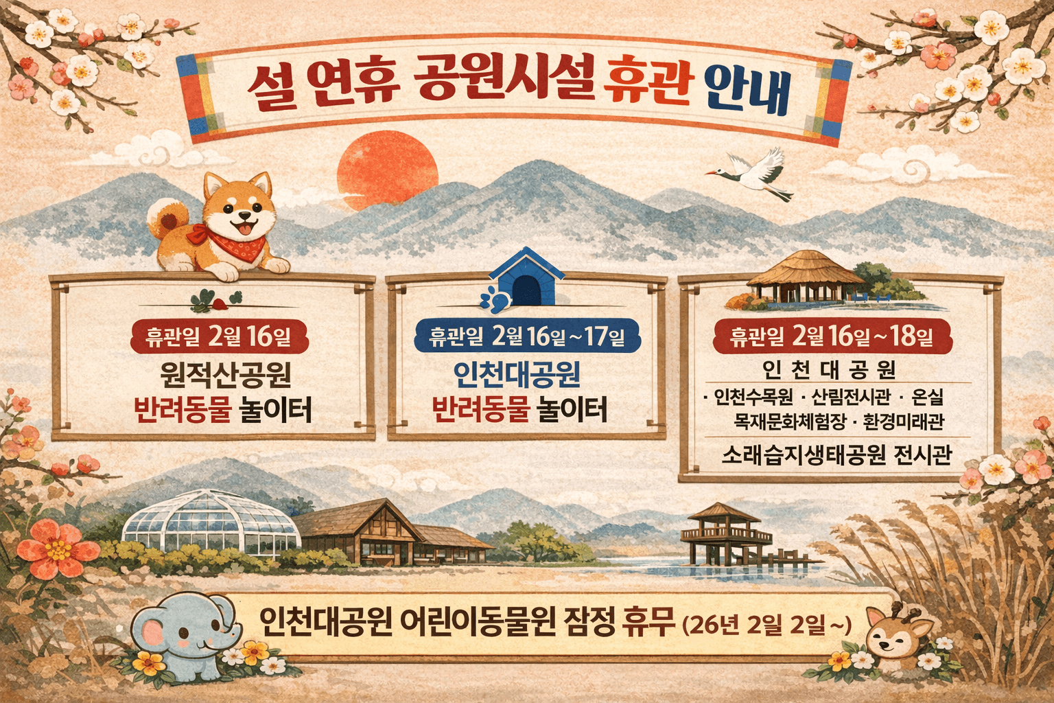 인천대공원 [설날 연휴] 휴관시설 안내