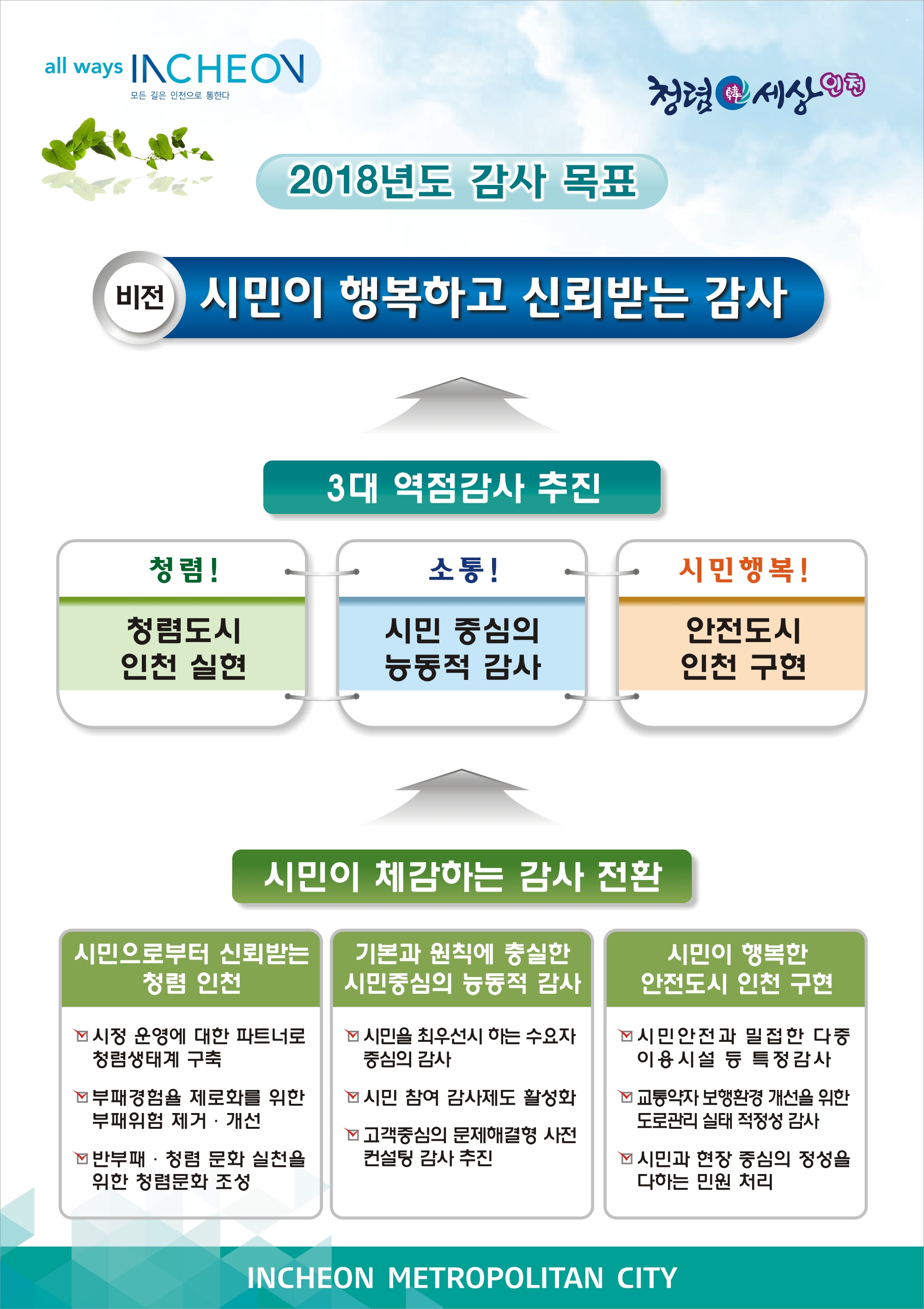 2018년도 인천광역시 감사관실의 감사 목표입니다.