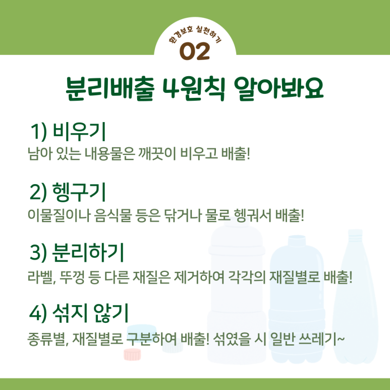 분리배출은 단순히 쓰레기를 버리는 과정이 아니라, 다시 사용할 수 있는 자원을 되살리는 첫걸음입니다.