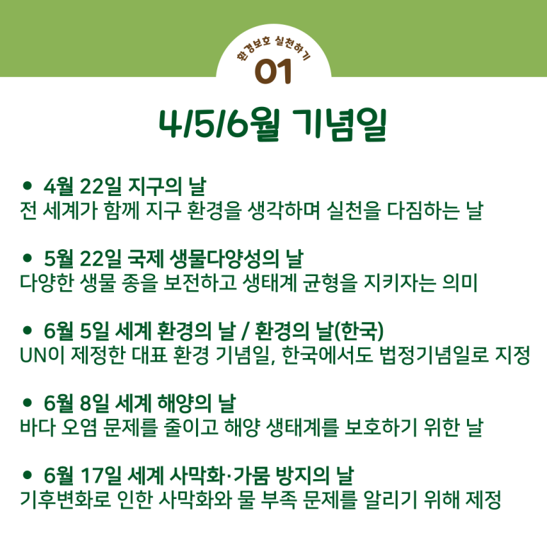 이처럼 환경 관련 기념일은 단순한 날짜가 아니라,
