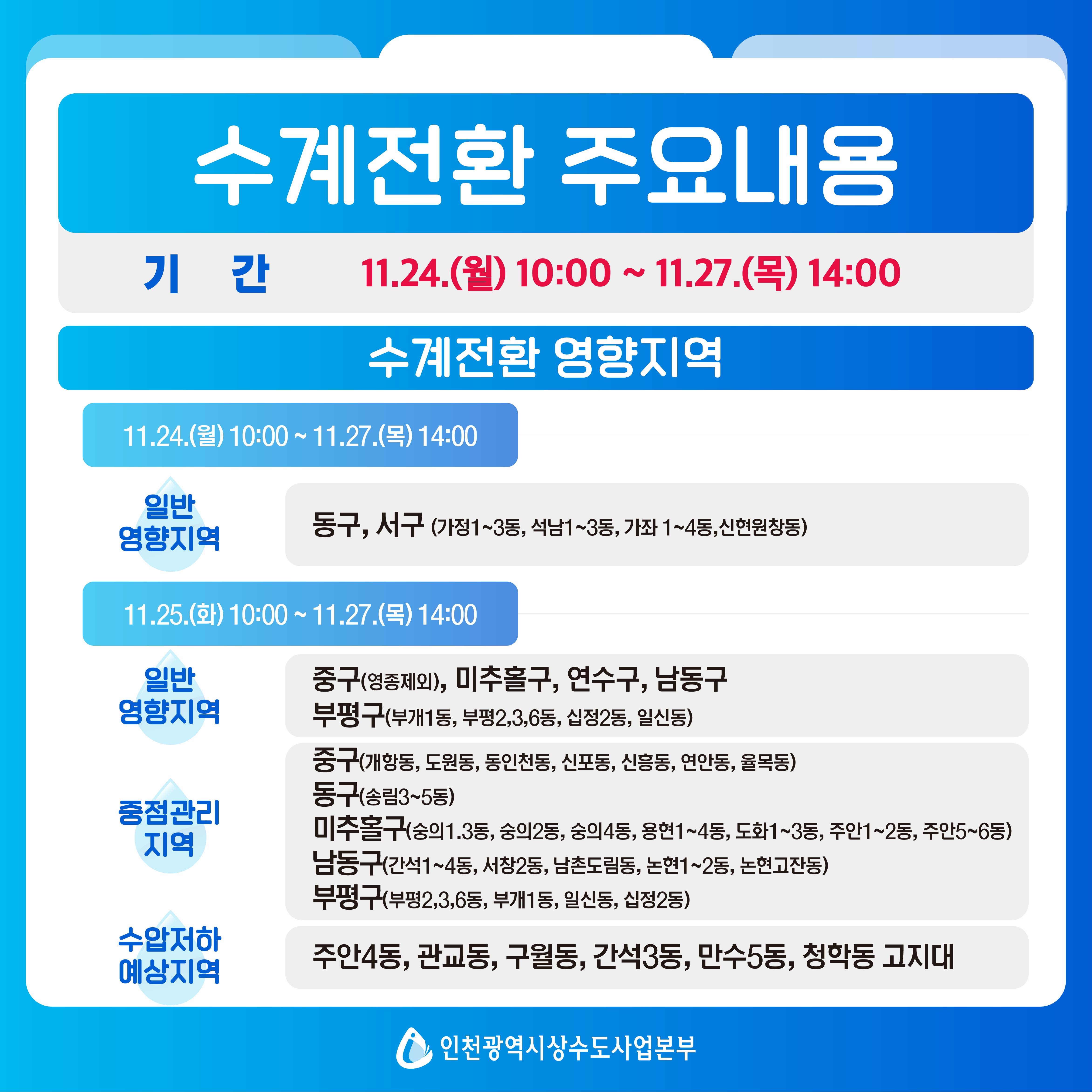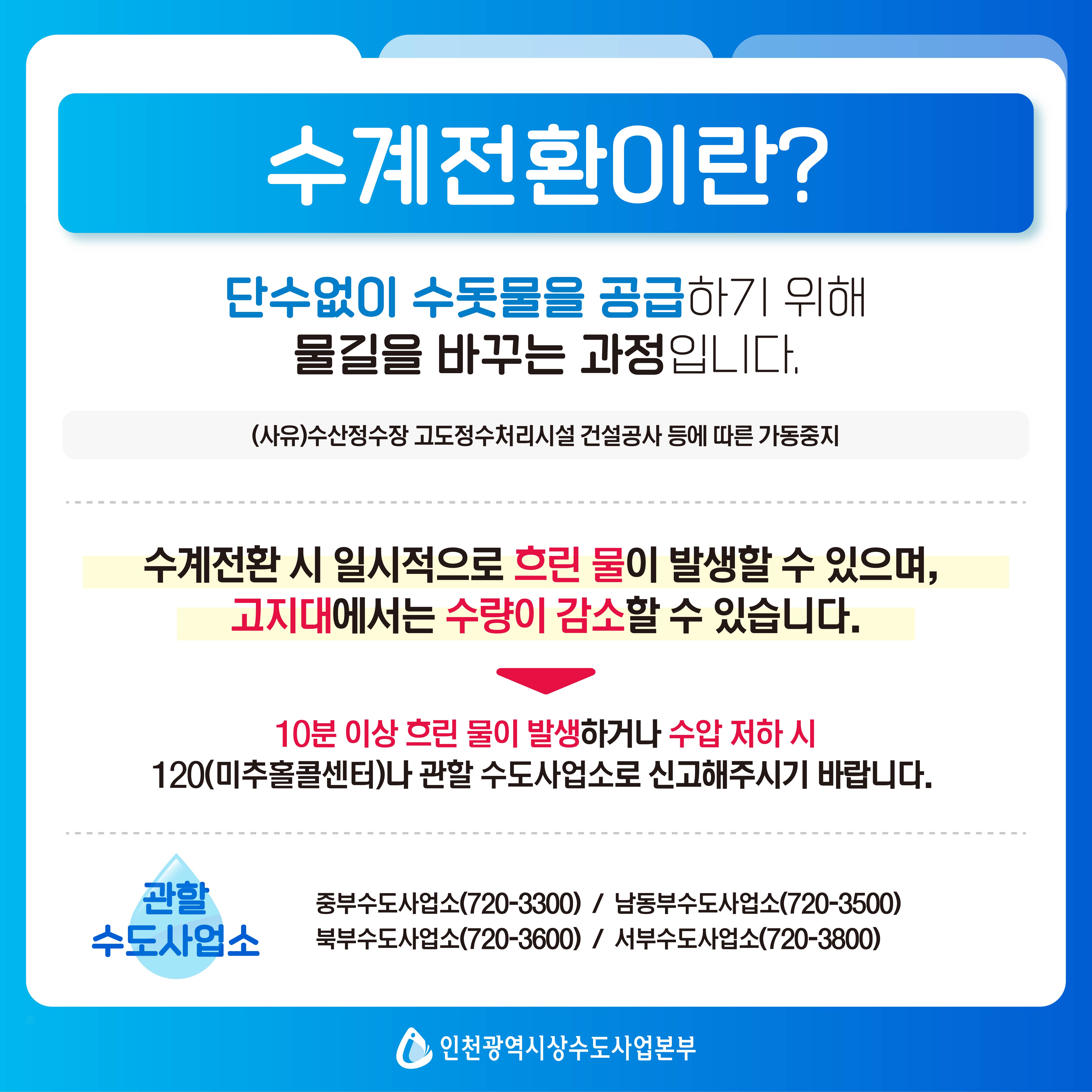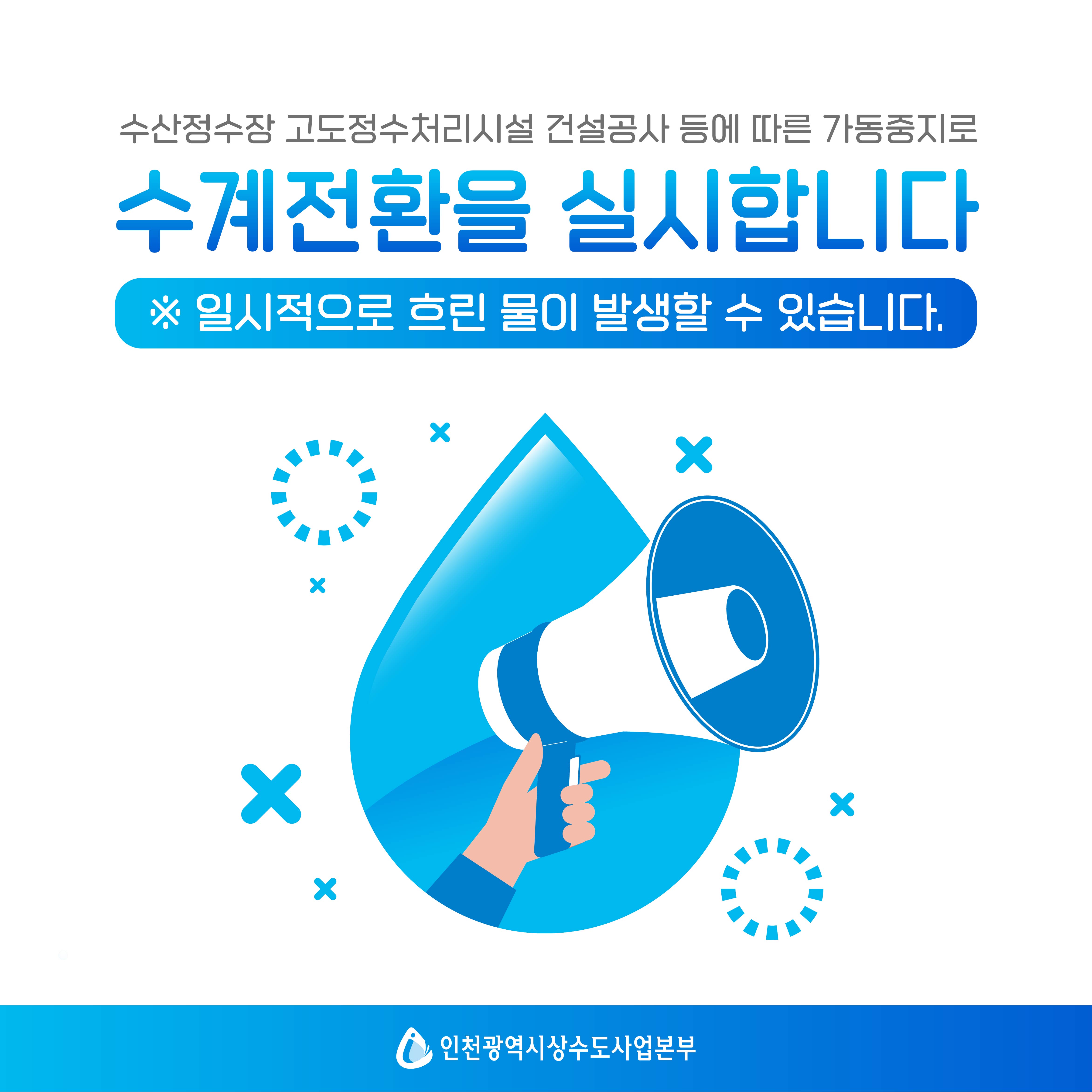 수산정수장 고도정수처리시설 건설공사에 따른 수계전환 실시 안내