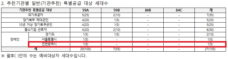 - 기관추천 특별공급 배정세대 수 및 접수 일정 등을 반드시 시행사 기관추천 특별공급 안내문에서 확인하시기 바랍니다.