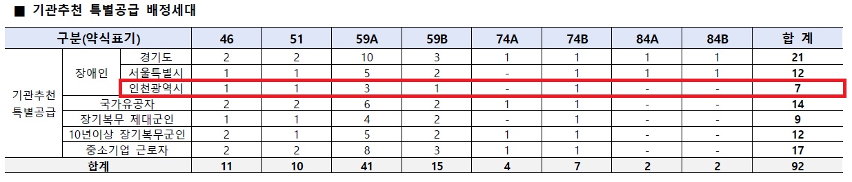 ※ 장애인 기관추천 특별공급 관련 개선사항(2022.1.3.시행) : 무주택 세대구성원 기간 및 인천시 연속 거주기간 등 자격요건 판단 기준일을