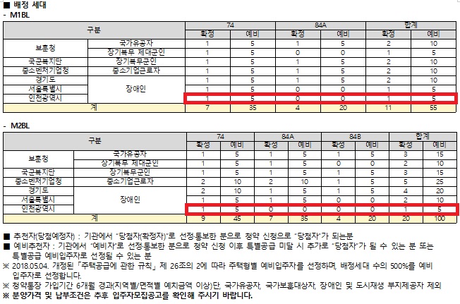 - 건설사의 사정으로 입주자 모집공고일이 최초 인천시 홈페이지에 안내한 입주자 모집공고(예정)일로부터 6개월 이상 연기될 경우 기존 접수 건에 대해서는 일괄 취소하고 기존 접수자를 포함하여 전면 재신청 실시함을 숙지하신 뒤 신청해 주시기 바랍니다.