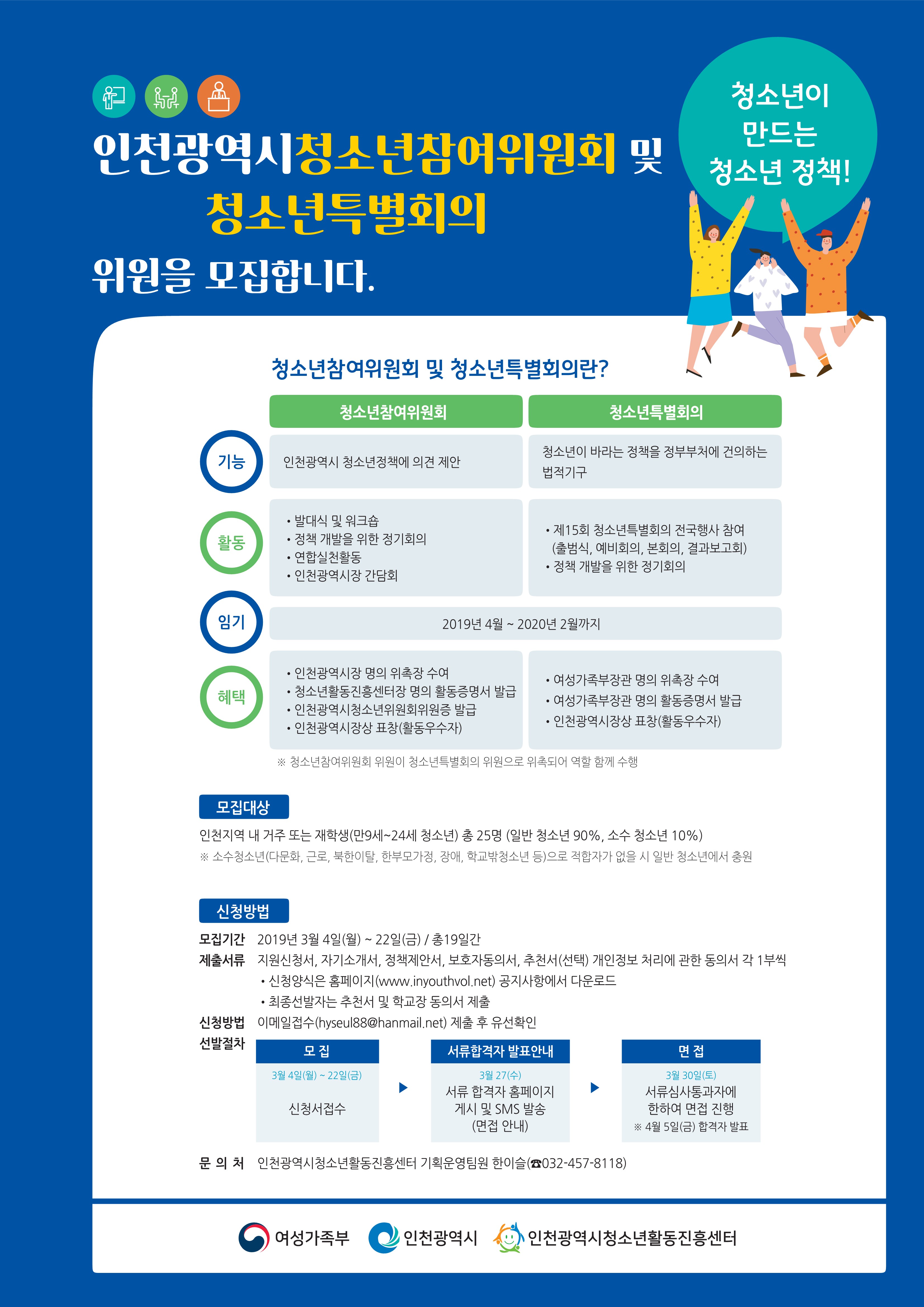 - 문 의 처 : 인천광역시청소년활동진흥센터 기획운영팀 한이슬 ☎ 032- 457-8110