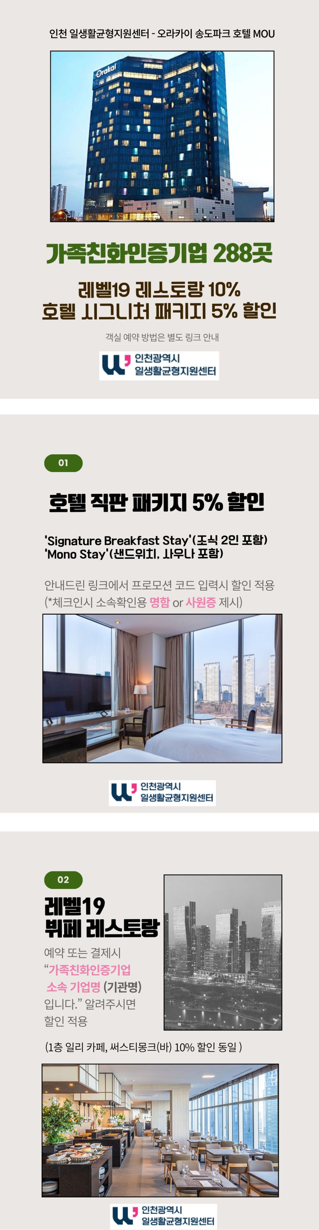 '인천광역시 일생활균형지원센터'와 '오라카이 송도파크 호텔' 은