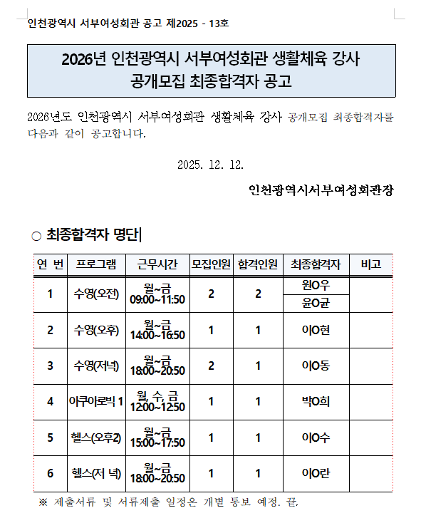 최종합격자 공고