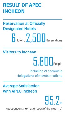 - APEC 인천회의 평균 만족도 95.2점 (대상 : 회의 참가자 641명 대상)