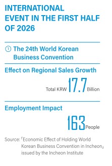 Additionally, the 24th World Korean Business Convention, scheduled for April 2026, will take place over three days at Songdo ConvensiA. Held in Incheon for the third time after 2009 and 2018, it is the largest economic network event for Koreans, with about 3,000 participants, including overseas Korean businesspeople from 64 countries and domestic entrepreneurs. Incheon, in partnership with the Overseas Koreans Agency, is thoroughly preparing for the entire event, including a welcome dinner, transportation and logistics support, accommodations, and volunteer operations.