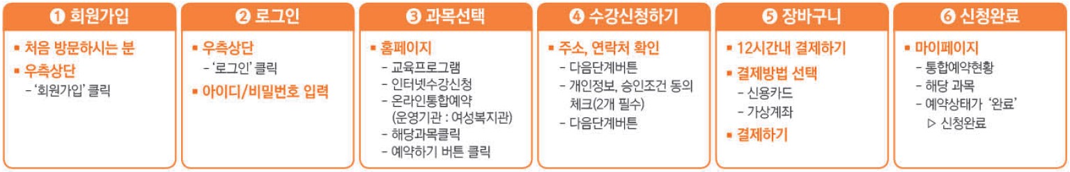 - 공통 : 신분증, 여성복지관 홈페이지 아이디